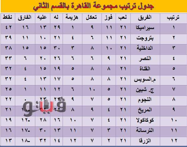 جدول ترتيب مجموعة القاهرة بالقسم الثاني قبل الجولة الأخيرة