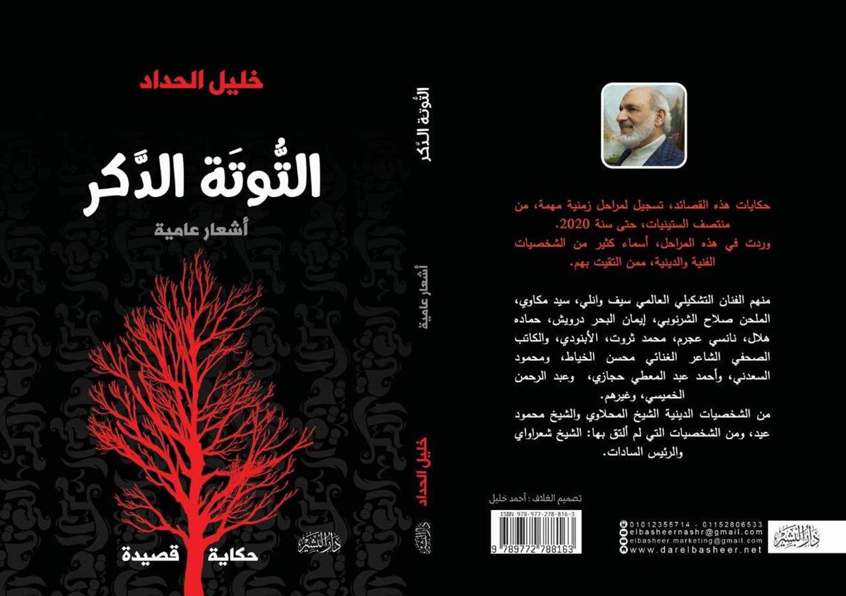 صدر حديثاً عن دار البشير للنشر والتوزيع، ديوان جديد للشاعر والفنان التشكيلي خليل الحداد، ويحمل الديوان اسم "التوٌتة الدكر"، و يقع فى 136 صفحة من القطع المتوسط.