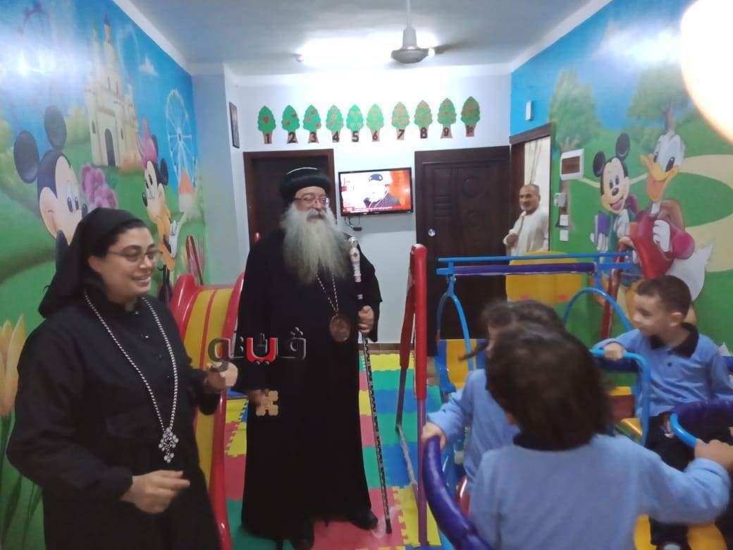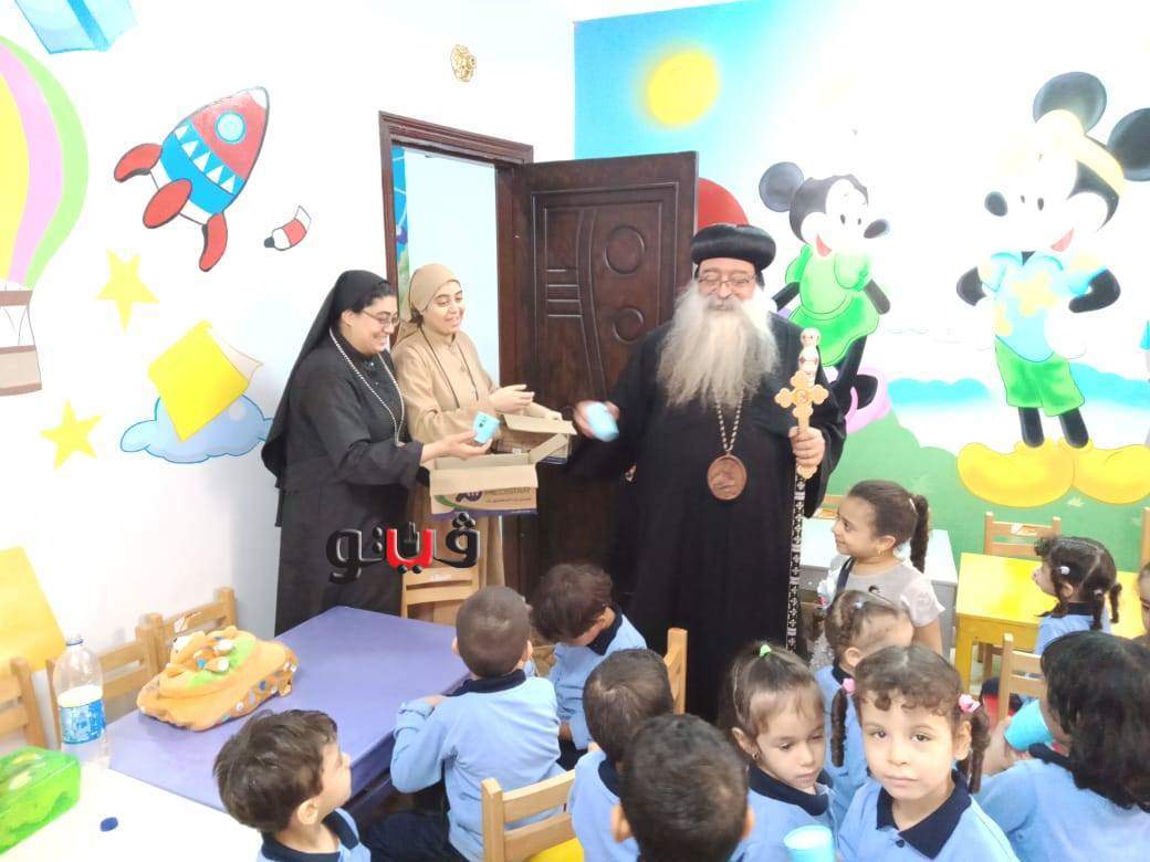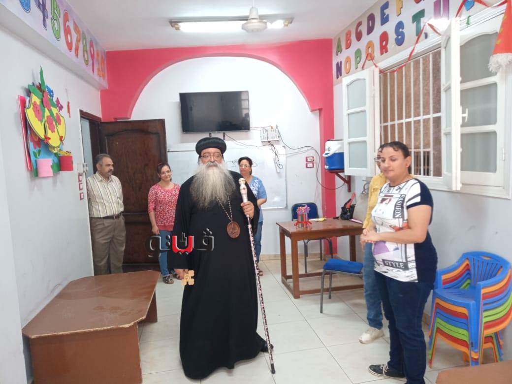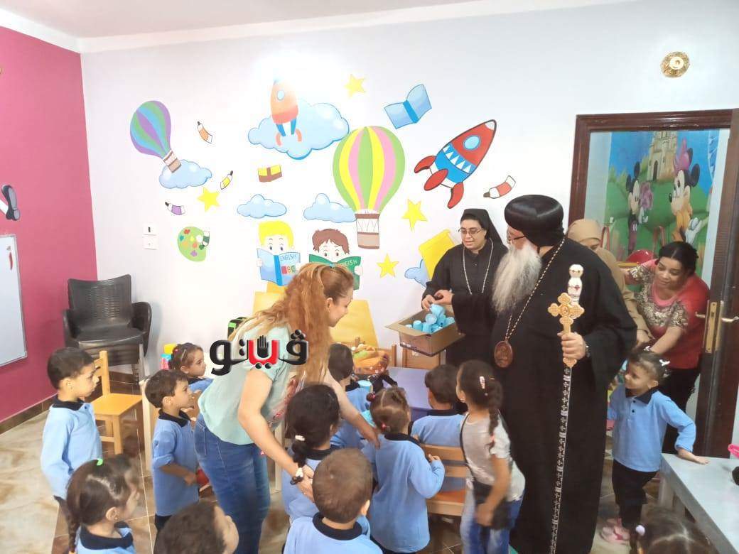 وأطمأن الأنبا تكلا ،أسقف دشنا، علي سير العمل بحضانة مارجرجس ،ووزع الحلوي والادوات الخاصة لكل تلميذ للحفاظ والوقاية من فيروس كورونا المستجد.