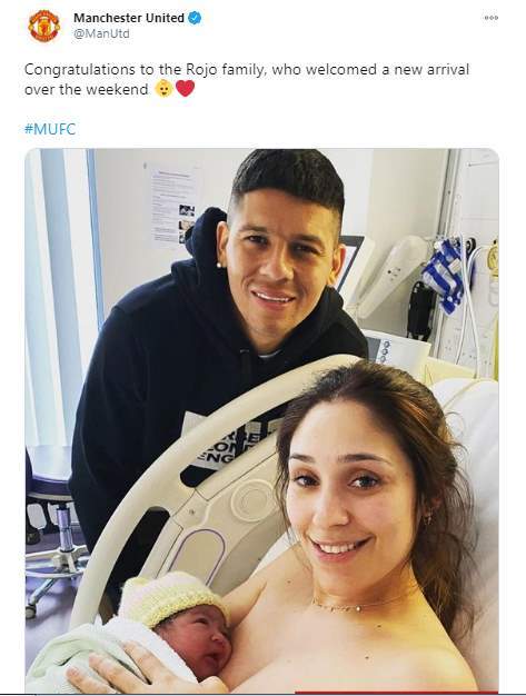 وكتب نادي مانشستر يونايتد تغريدة على تويتر "تهانينا لعائلة روخو. الذي استقبل مولودته الجديدة تهاية هذا الأسبوع".