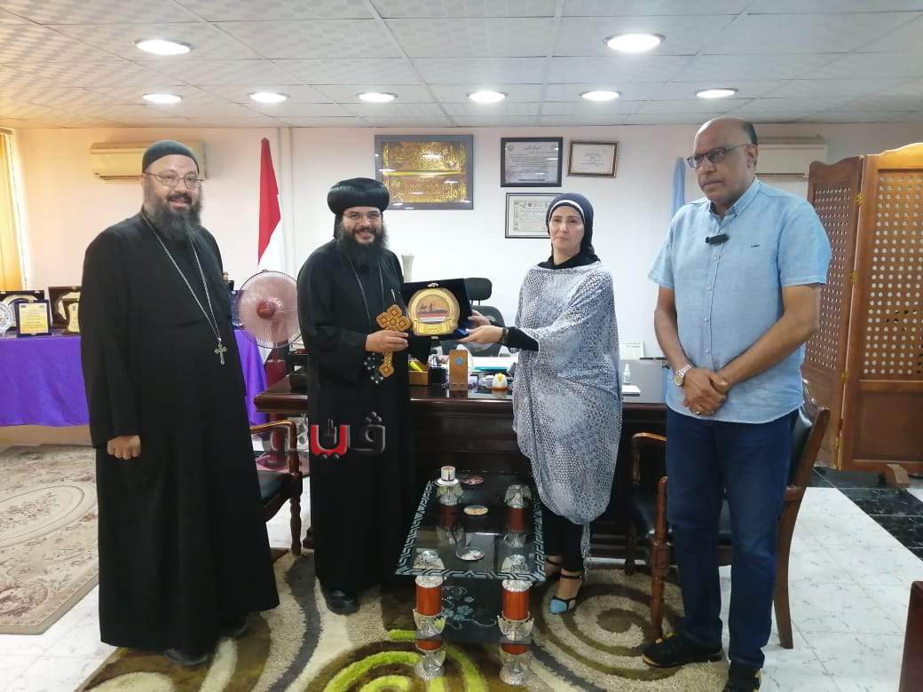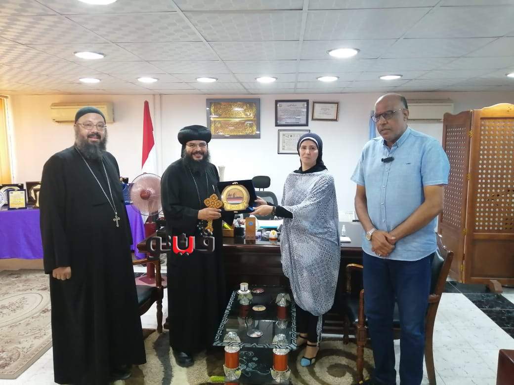 وخلال اللقاء قدم الأنبا ايلاريون أسقف إيبارشية البحر الأحمر، دروع تذكارية لهم باسم المطرانية كرسالة شكر وتقدير لجهودها في تطوير وتنمية مدينة سفاجا ودورها في مواجهة جائحة كورونا.