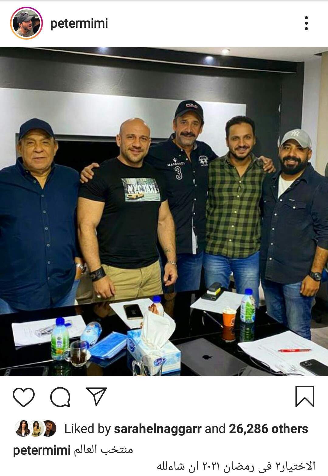 وعلق بيتر ميمي على الصورة قائلا: "منتخب العالم.. الاختيار2 فى رمضان ٢٠٢١ إن شاء الله".