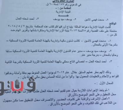 التأديبية العليا تعاقب مديرا عاما.. وتبرئ آخرين بـ"الثروة السمكية"