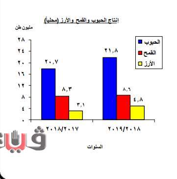 واشار التقرير إلى أن هذا جاء زيادة قدرها 5.4٪ ويرجع ذلك إلى زيادة انتاج محاصيل القمح والأرز.