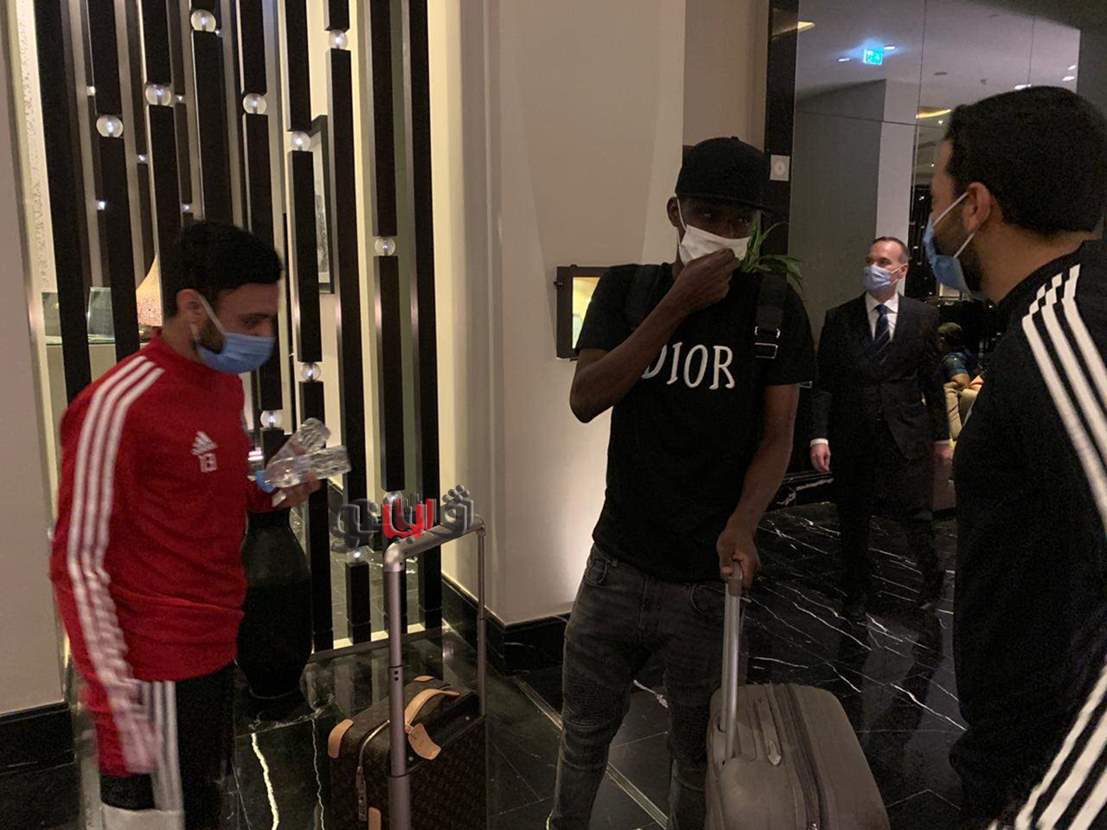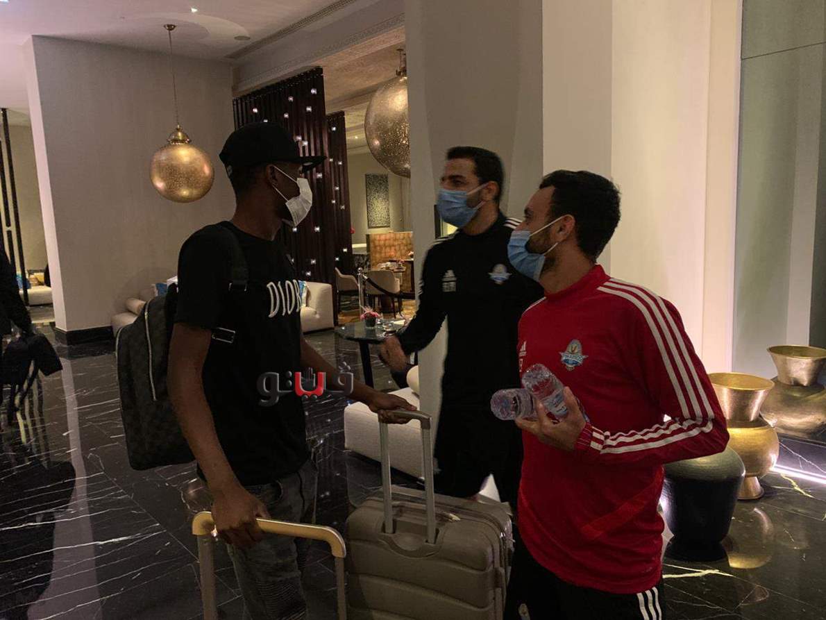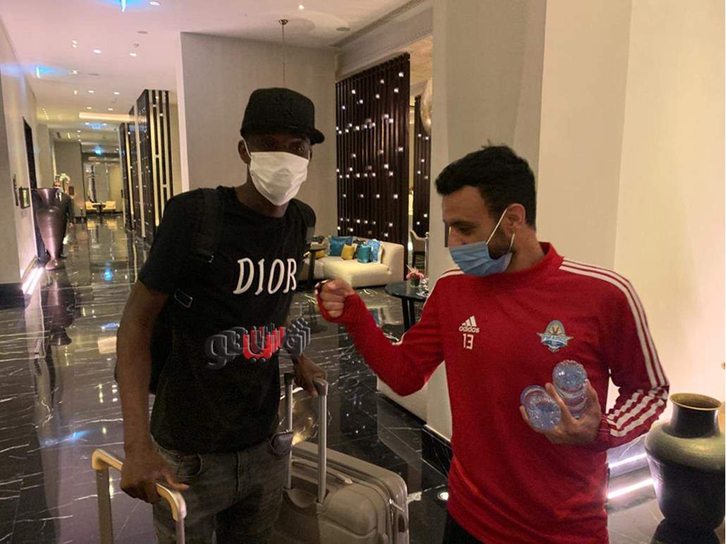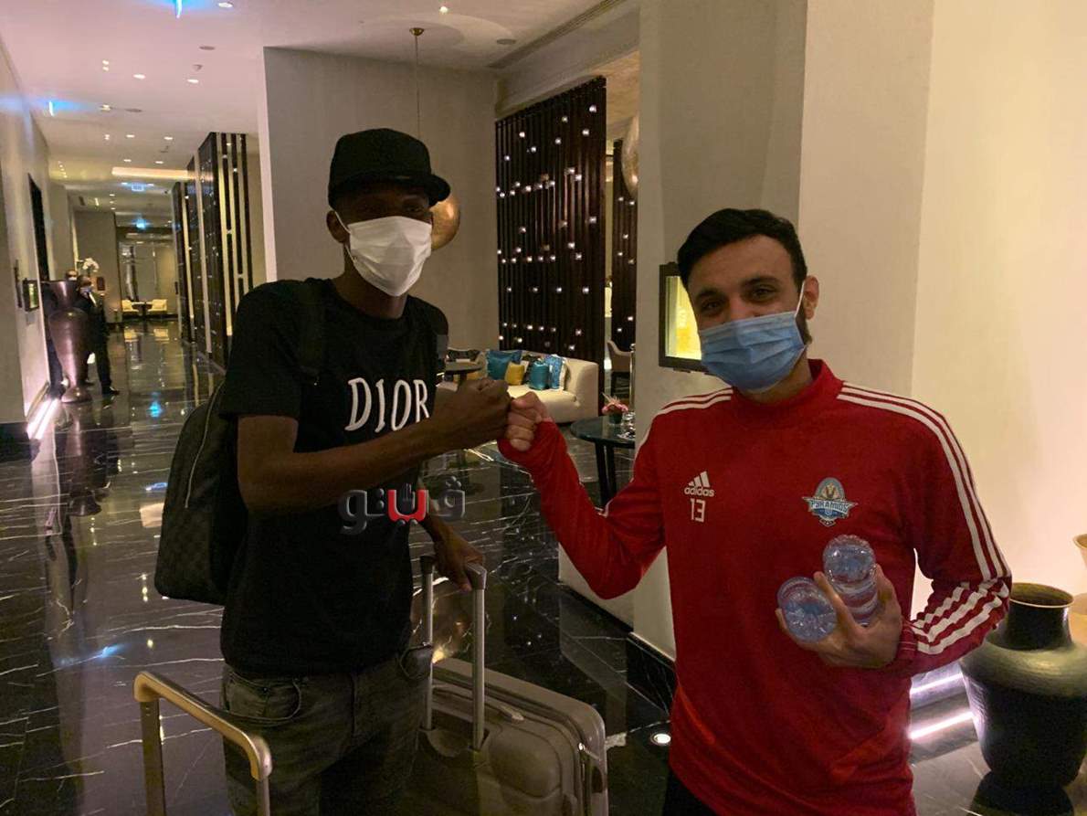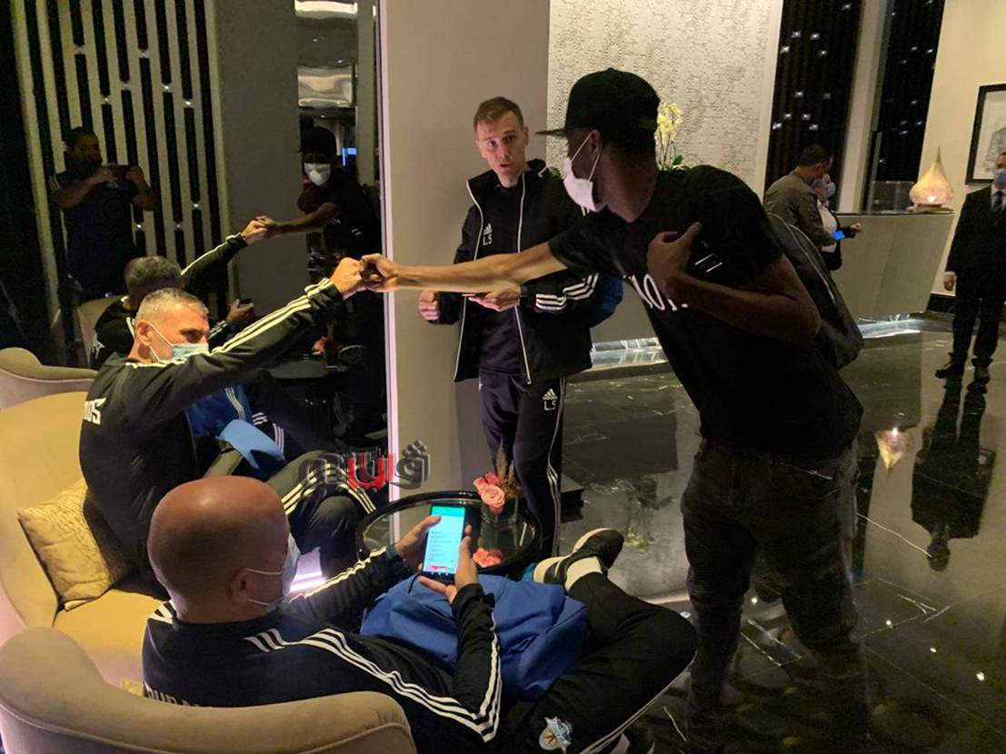 واستقبل لاعبو بيراميدز زميلهم لدى وصوله لفندق الإقامة مع الالتزام بالإجراءات الاحترازية والتباعد الاجتماعي، حيث يجري الفريق مسحة طبية مساء اليوم، بفندق الإقامة.