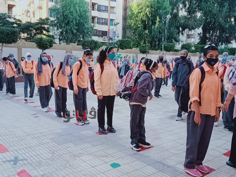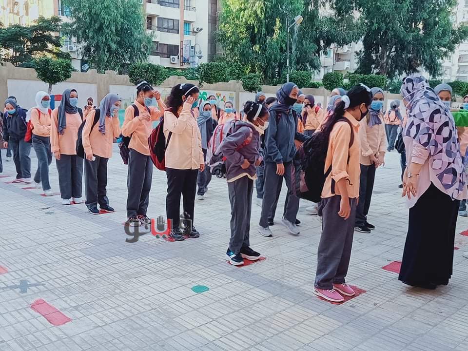 بالتباعد الاجتماعي والكمامات.. انطلاق طابور الصباح في مدارس الإسكندرية | صور