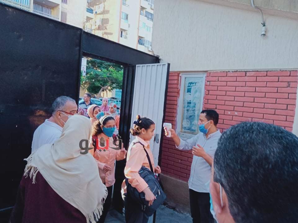 وبدأ الطلاب في تنفيذ التعليمات والإرشادات الوقائية بداخل المدرسة مع الحرص على التباعد الاجتماعي وارتداء الكمامات والقفازات الطبية لمنع انتشار الفيروس الوبائي.