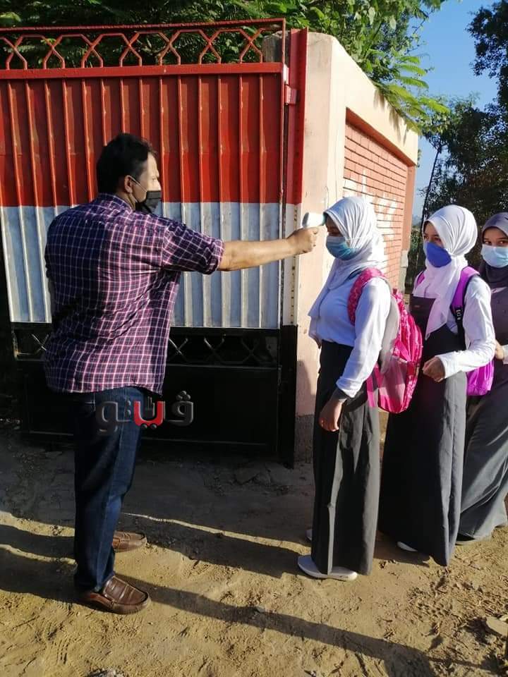 قياس درجة الحرارة وارتداء الكمامة.. مدارس المنوفية تطبق الإجراءات الاحترازية | صور