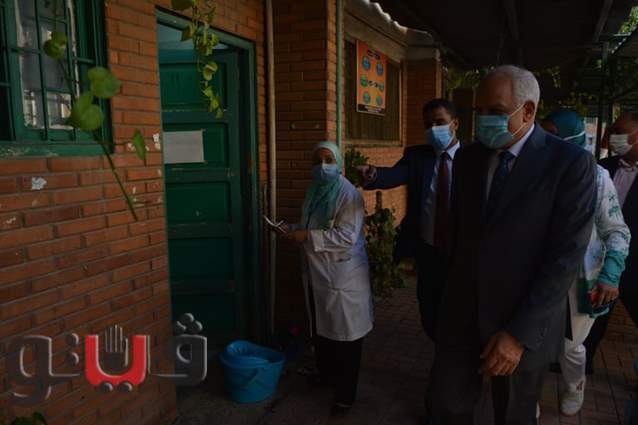 محافظ الجيزة يتفقد حجرة العزل بمدرسة الشهيد أسامة أحمد | فيديو وصور