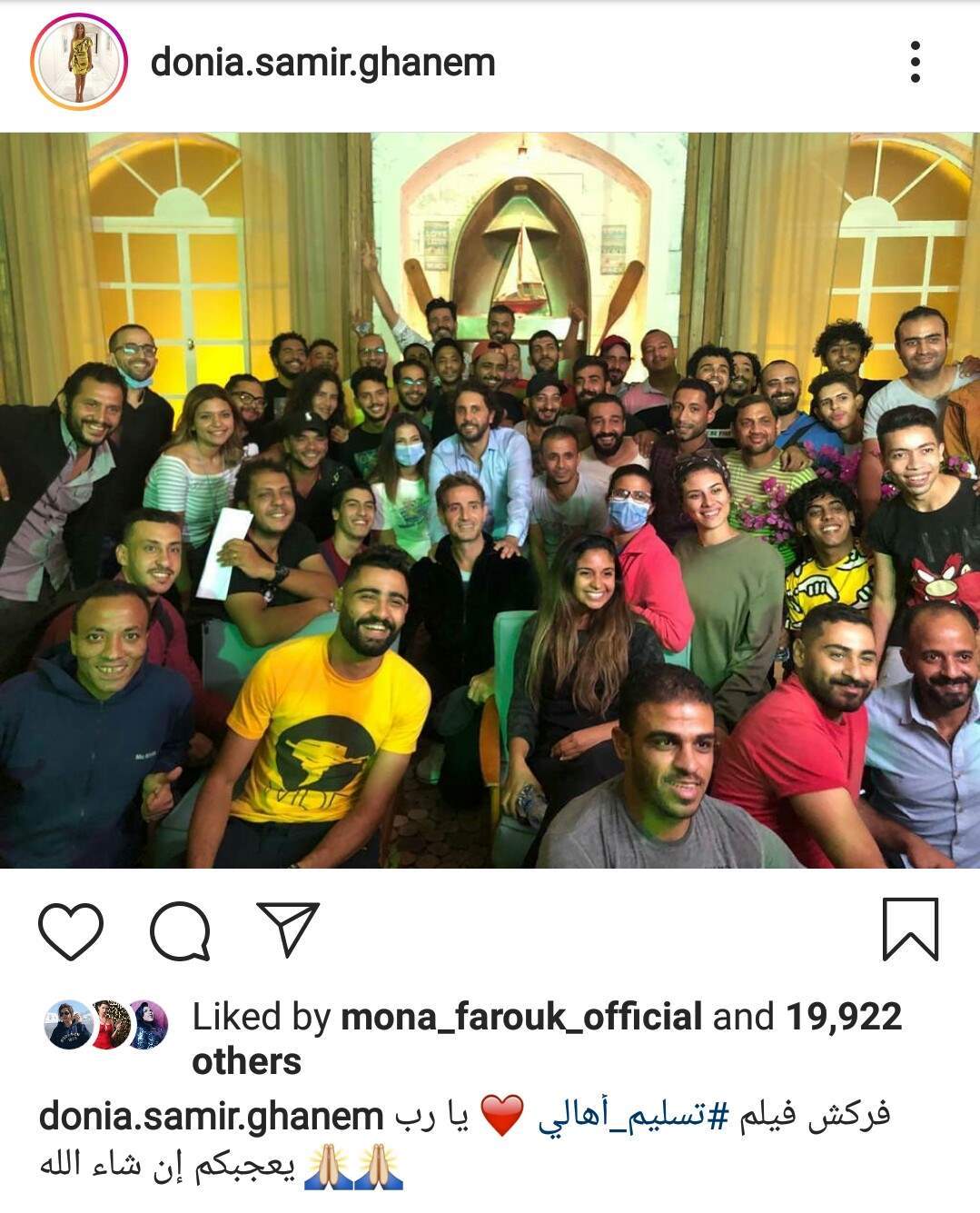 وعلقت دنيا سمير غانم على الصورة قائلة: "فركش فيلم تسليم أهالي يارب يعجبكم إن شاء الله".