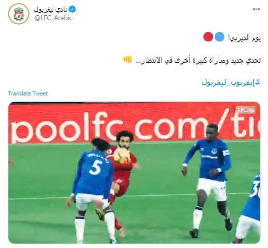 وكتب نادي ليفربول تغريدة على تويتر "يوم الديربي! تحدي جديد ومباراة كبيرة أخرى في الانتظار... #إيفرتون_ليفربول"