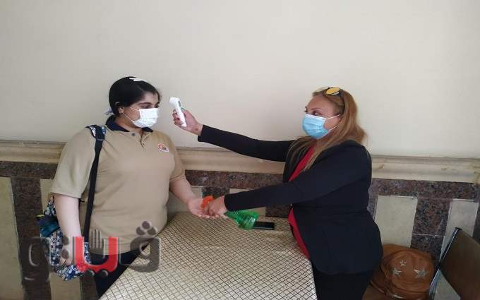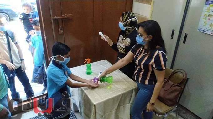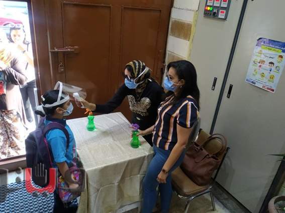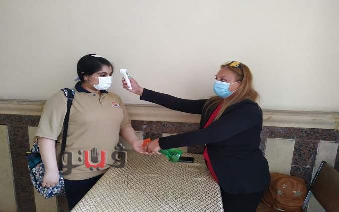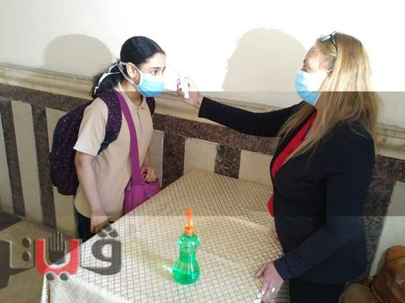 وعلى جانب آخر شكلت إدارة المدرسة لجنة من العاملين بها، للوقوف على الأبواب المخصصة لدخول الطلاب، وقام العاملون بقياس درجات الحرارة بواسطة أجهزة قياس الحرارة لكل طالب قبل دخوله، بجانب تعقيم أيادي الطلاب بالكحول ومواد التعقيم.