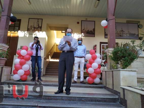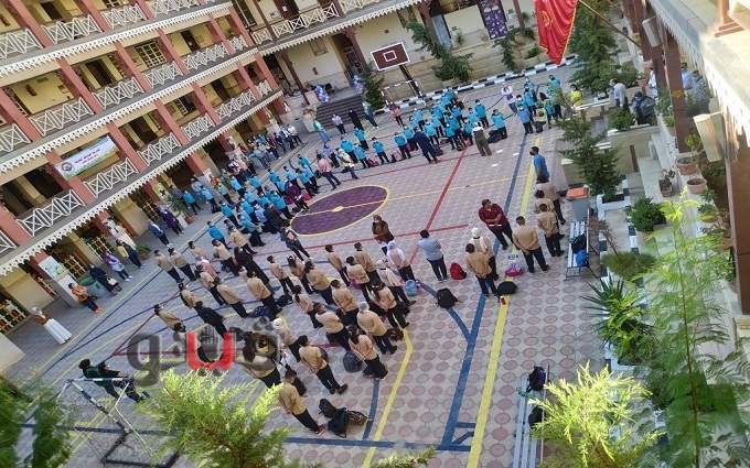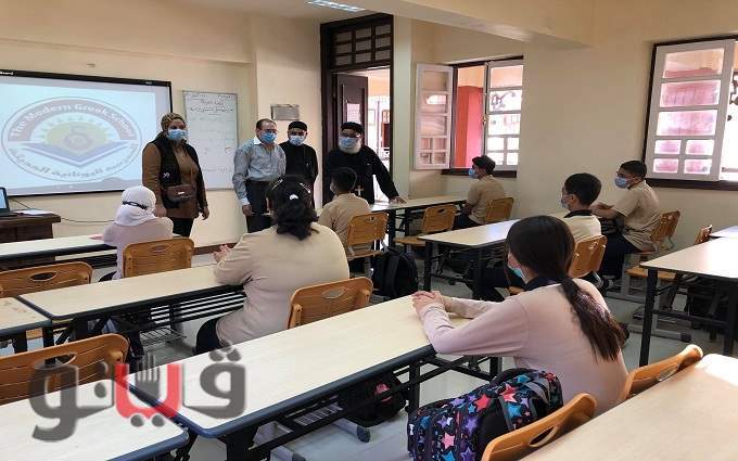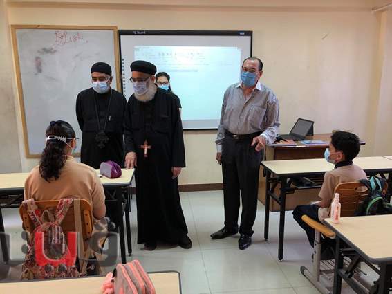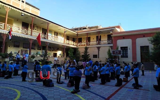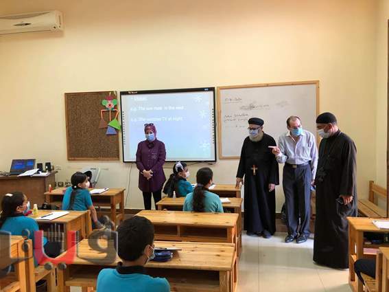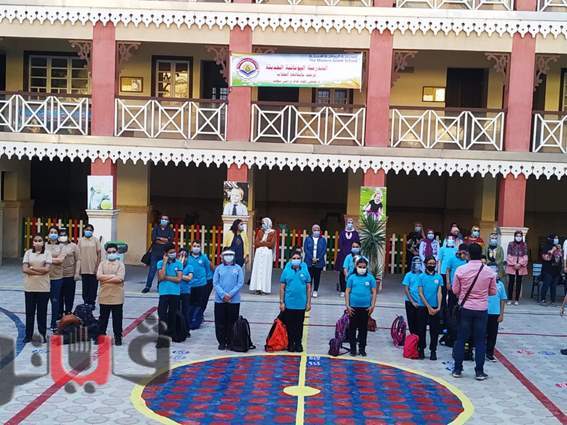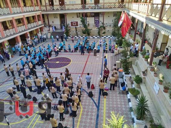 وشارك الطلاب في حضور طابور الصباح القمص بولا سعد الممثل القانوني لمدارس المطرانية، وعزيزة رفعت مدير إدارة شرق التعليمية، ولفيف من القيادات التعليمية بالمحافظة، وكان في استقبالهم جميعا مدير المدرسة موريس فريد. وحرصت المدرسة على وضع البالونات المبهجة ولافتات الترحيب بالطلاب بعودتهم لمدرستهم بعد توقف الدراسة لحوالي 6 أشهر. كما حرصت المدرسة أيضا على تطبيق الكثير من الإجراءات الاحترازية منذ الدقيقة الأولى لدخول الطلاب للمدرسة ،وكان أولها التأكد من ارتداء كل طالب الكمامة قبل دخوله للمدرسة.
