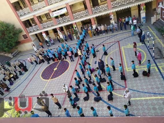 وكلفت إدارة المدرسة عددا من العاملين بها للتواجد بشكل دوري في كل طابق من طوابق المدرسة لتعقيم أيادي الطلاب والتأكد من تطبيقهم لكافة الإجراءات الاحترازية خلال ساعات اليوم الدراسي.