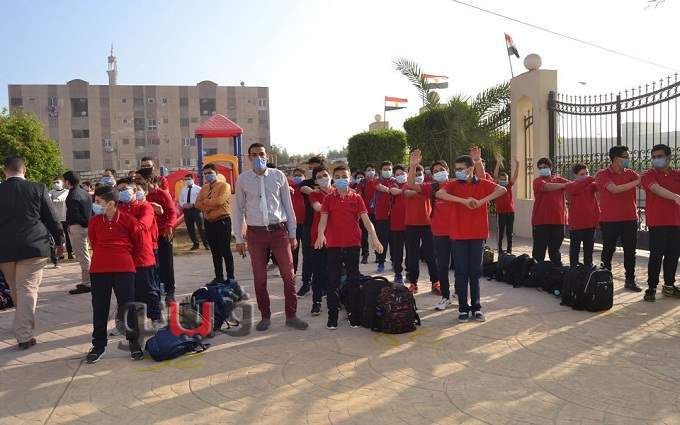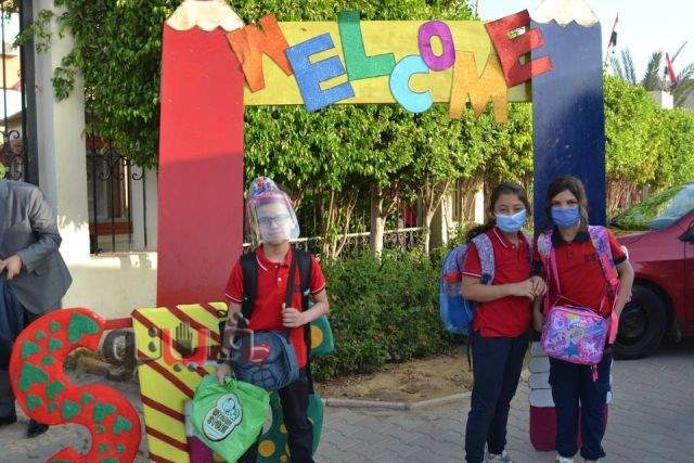 بالكمامة والفيس شيلد.. 25 صورة ترصد عودة المدارس في عصر الكورونا ببني سويف