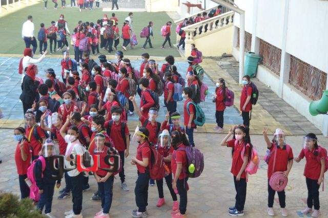 المدارس "الخاصة" والحكومية التي تعمل بنظام "الفترتين" وسط إجراءات التعايش مع جائحة فيروس كورونا "كوفيد 19" التي التزم بها