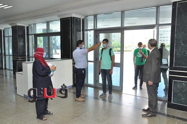 ويتابع رئيس الجامعة نظام حضور وانصراف الطلاب من الكليات ونظام تلقى الدروس والمحاضرات والتدريبات العملية فى الكليات العملية والإجراءات الخاصة بممارسة الأنشطة وتطبيق إجراءات الدخول والخروج على دفعات بينها فواصل زمنية لتجنب الزحام،والحفاظ على التباعد الجسدى مسافة مترين فى المناطق كثيفة الحركة والتشجيع على التدريس عن بعد، كما شملت الإجراءات تحديد نسبة الطلاب بناء على حجم قاعات التدريس بالجامعة وبالنسبة لتعليم الطلاب الكليات العملية يكون ضمن مجموعات"ثابتة".