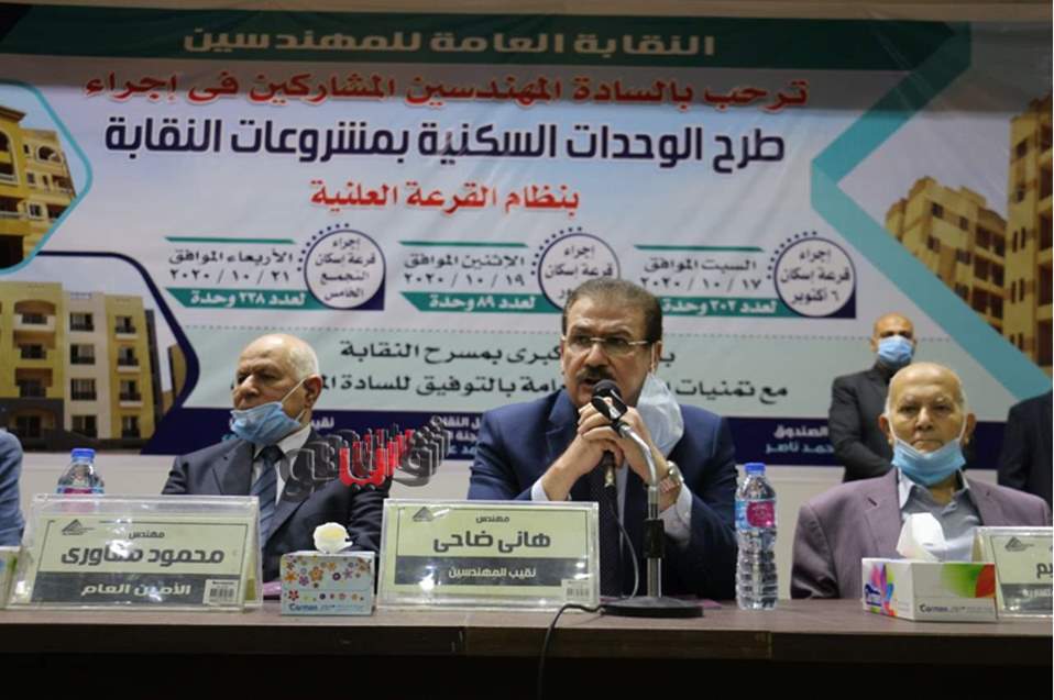 وكانت النقابة العامة للمهندسين، أجرت اليوم قرعة علنية على 302 وحدة سكنية باسكان 6 أكتوبر، برئاسة المهندس احمد المصري رئيس لجنة الإسكان ونقيب مهندسي الإسماعيلية، وضمت اللجنة في عضويتها المهندس أحمد حشيش أمين الصندوق المساعد لنقابة المهندسين، المهندس خالد توكل عضو المجلس الاعلي ورئيس لجنة العلاقات العامة، ومقرر لجنة القرعة، والمهندس فاروق الحكيم رئيس لجنة المهندسين الاستشاريين بالنقابة، كما ضمت اللجنة عدد من القانونيين والماليين بالنقابة العامة.