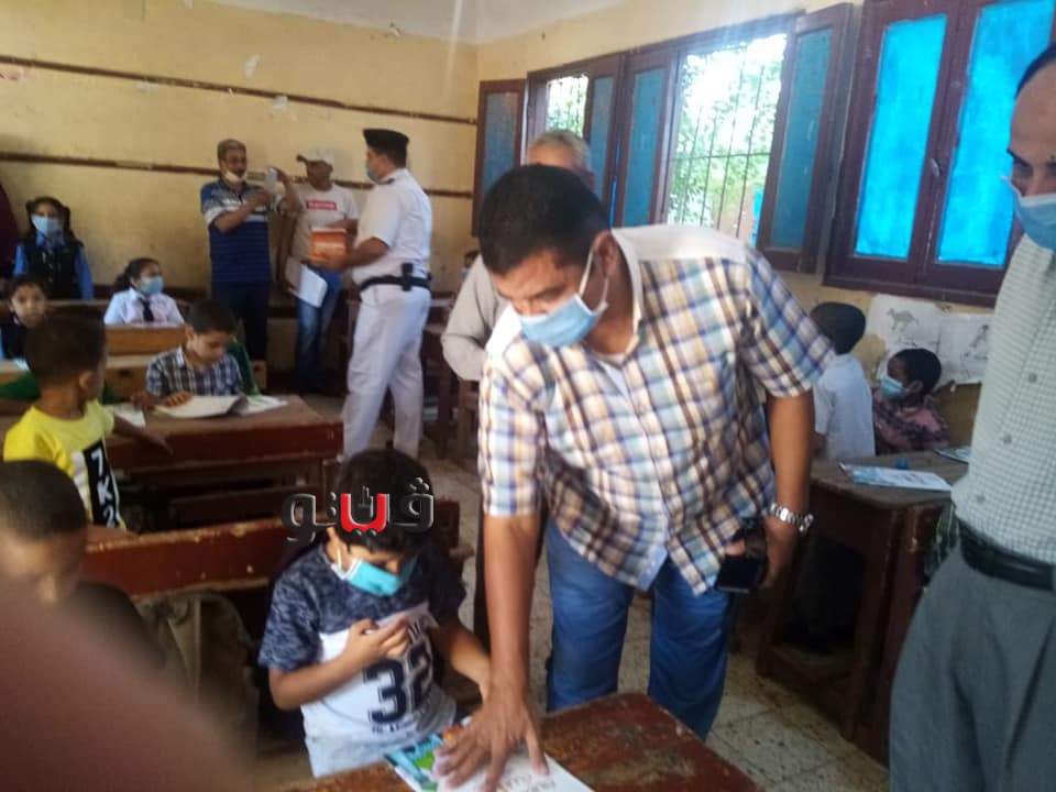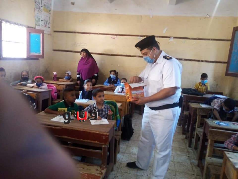 رجال الشرطة يوزعون الحلوى على الطلاب ويشاركون في طابور الصباح بمدارس قنا | صور