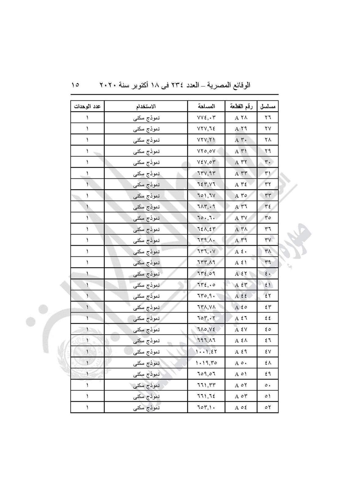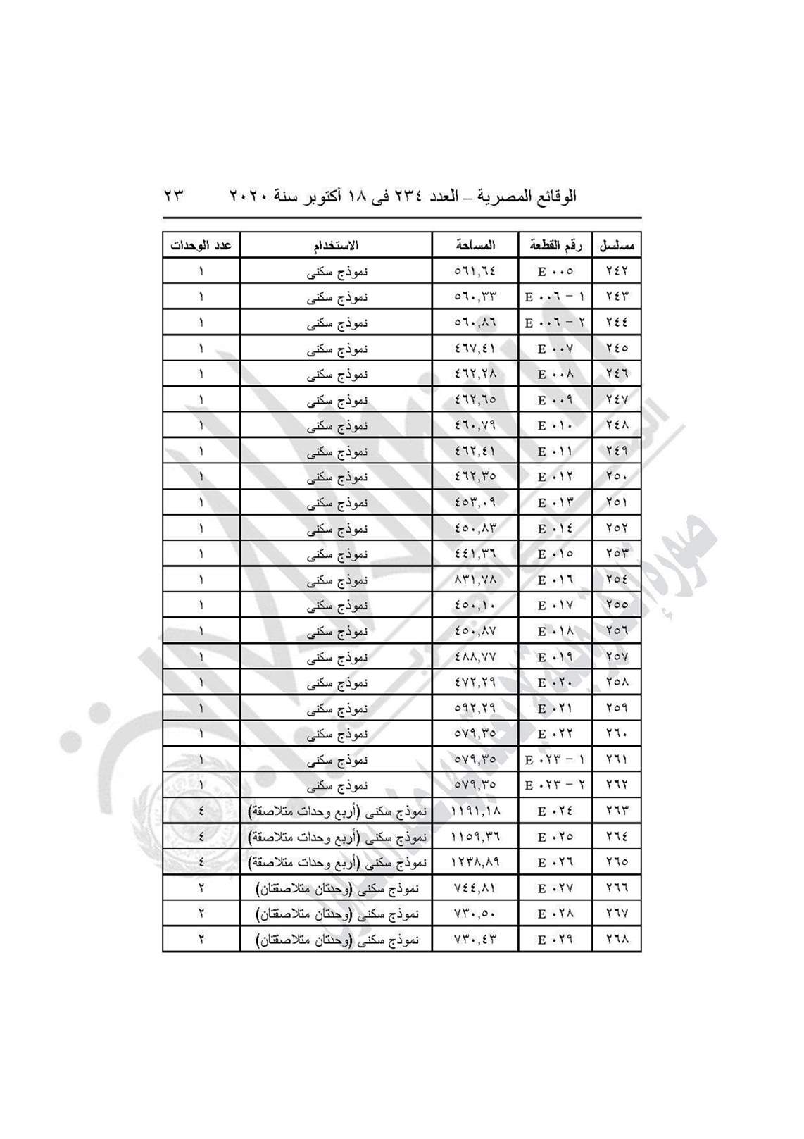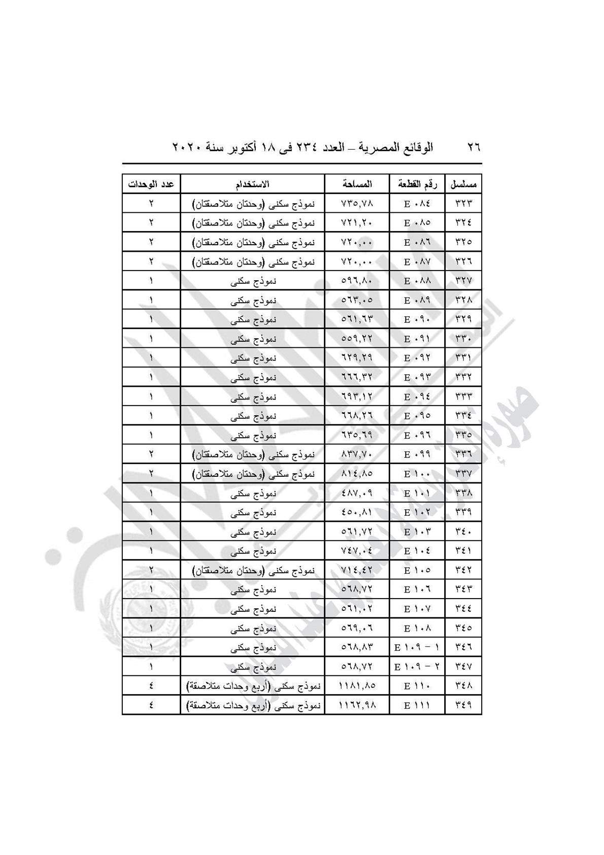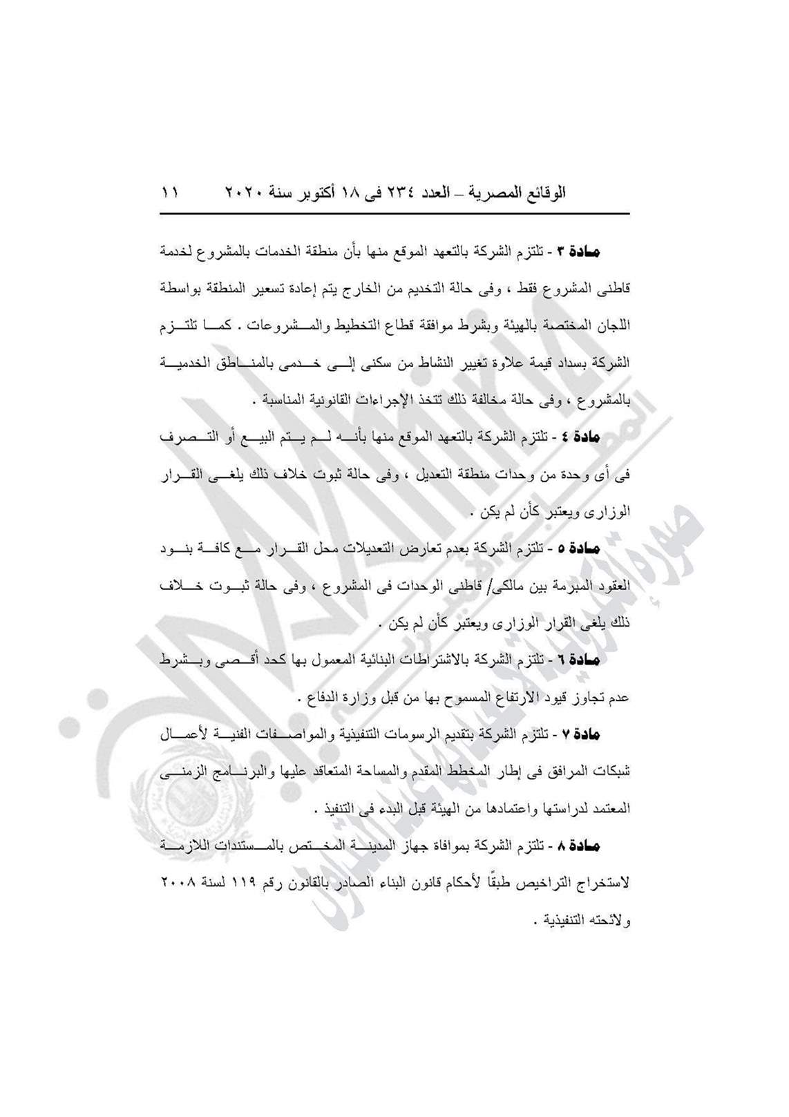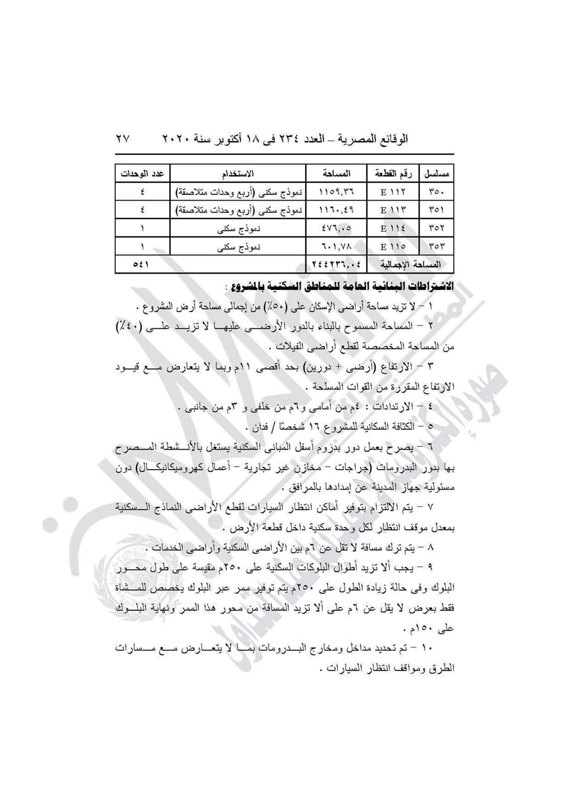 نشرت جريدة الوقائع المصرية في عددها رقم 234، الصادر في 18 أكتوبر 2020، قرار وزارة الإسكان والمرافق والمجتمعات العمرانية رقم 531 لسنة 2020، بشأن اعتماد تعديل تخطيط وتقسيم قطعة الأرض بمساحة 150 فدانا الواقعة بمنطقة امتداد مدينة الشيخ زايد لإقامة مشروع عمراني متكامل.