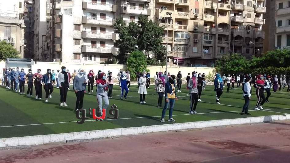 استقبلت كلية التربية الرياضية جامعة الإسكندرية، اليوم الأحد، طلابها بإجراءات احترازية مشددة والتشديد على ارتداء الكمامات وممارسة التمرينات الرياضية الصباحية مع الالتزام بالتباعد الاجتماعى.
