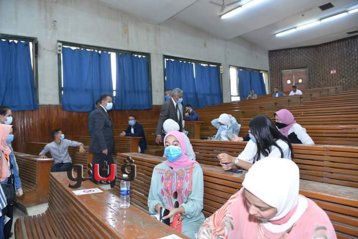 وفى بكلية الزراعة فقد تم تفقد مدرج(1) الفرقة الأولى وذلك فى حضور الدكتور محمد حمام عميد الكلية ، وخلالها شدد على كافة الطلاب بالالتزام بارتداء الكمامة خاصة فى الأماكن المغلقة .