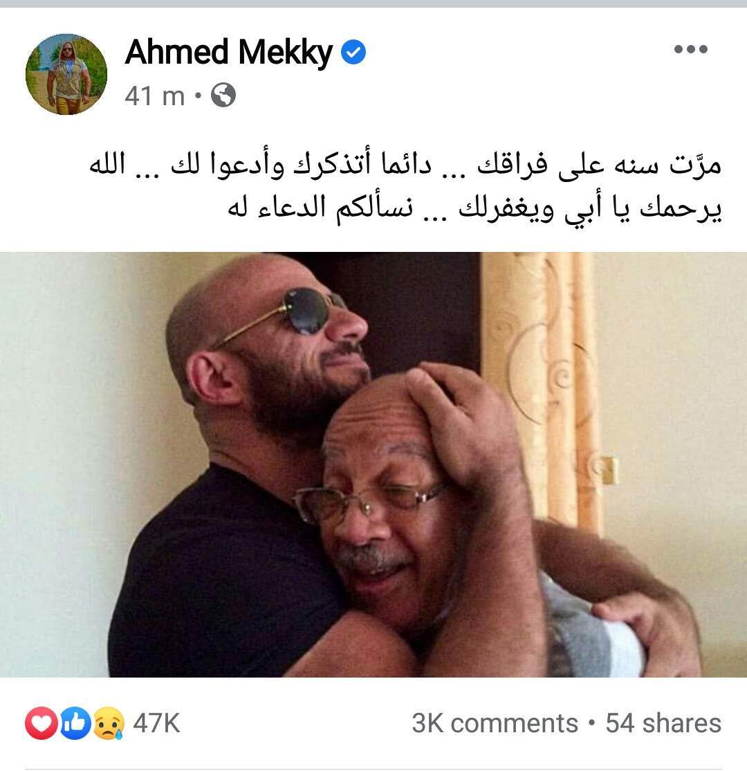 ونشر أحمد مكي صورة تجمعه بوالده معلقا عليها: "مرَّت سنة على فراقك ... دائما أتذكرك وأدعو لك ... الله يرحمك يا أبي ويغفر لك ... نسألكم الدعاء له".