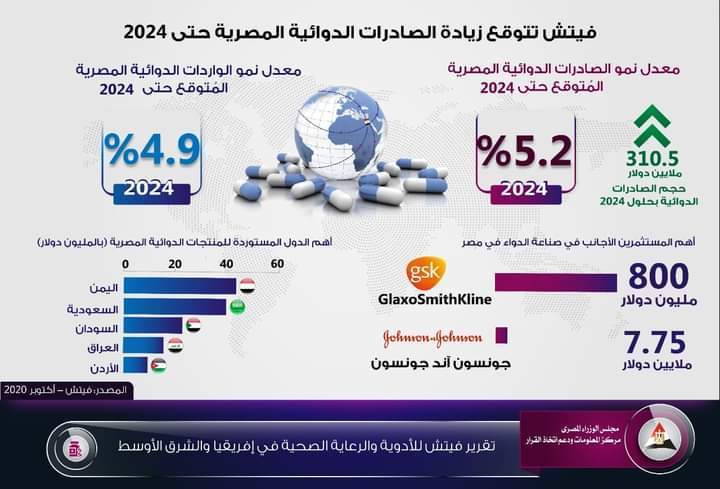 فيتش تتوقع زيادة الصادرات الدوائية المصرية حتى 2024 | إنفوجراف الأحد 18/أكتوبر/2020 - 09:15 م 10/18/2020 9:15:49 PM الصادرات الدوائية المصرية أحمد رأفت شارك طباعة 18 حجم الخط شارك طباعة الصادرات المصرية أخبار مصر الصناعات الدوائية المصرية