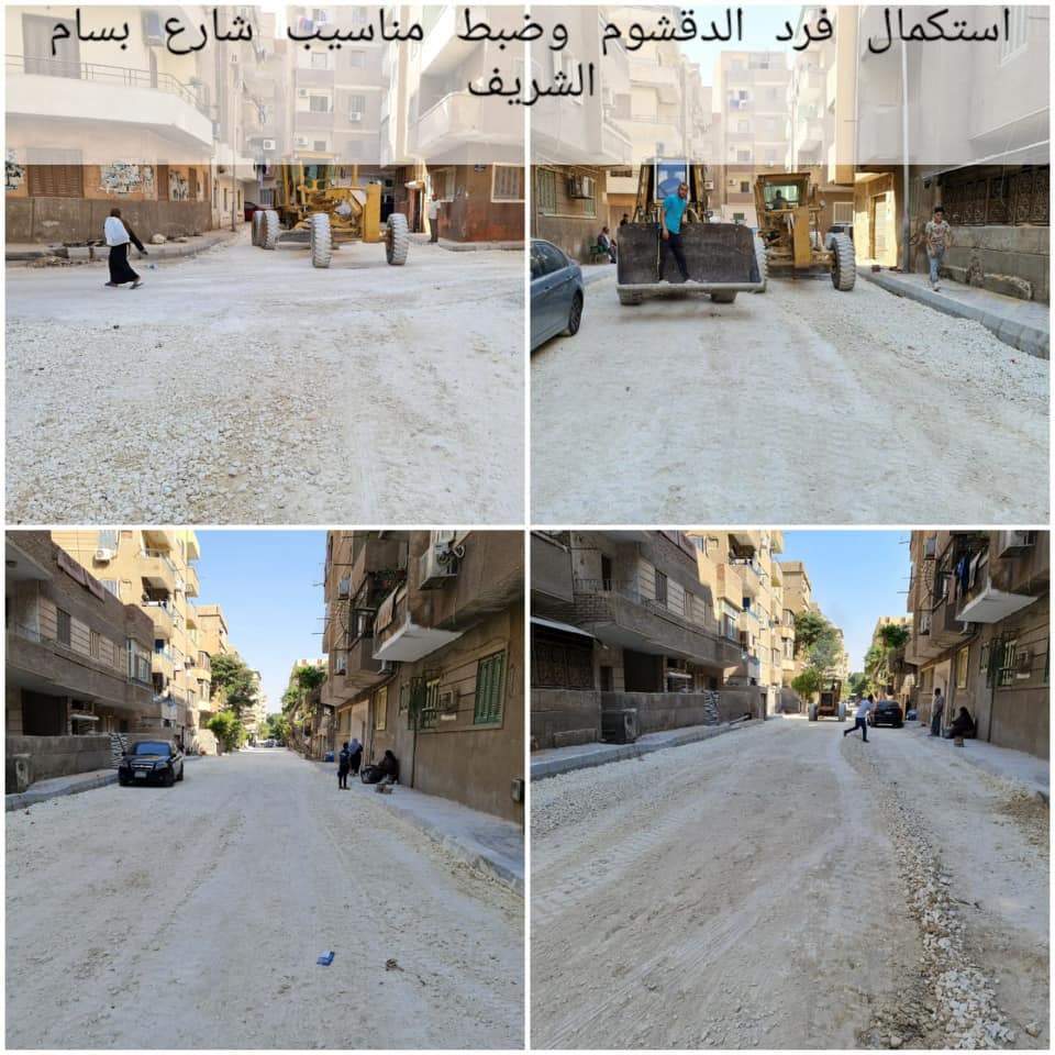 طبقة الدقشوم وضبط المناسيب بشارع بسام الشريف من أحمد كامل وذلك تمهيدا لرصف الشارع.