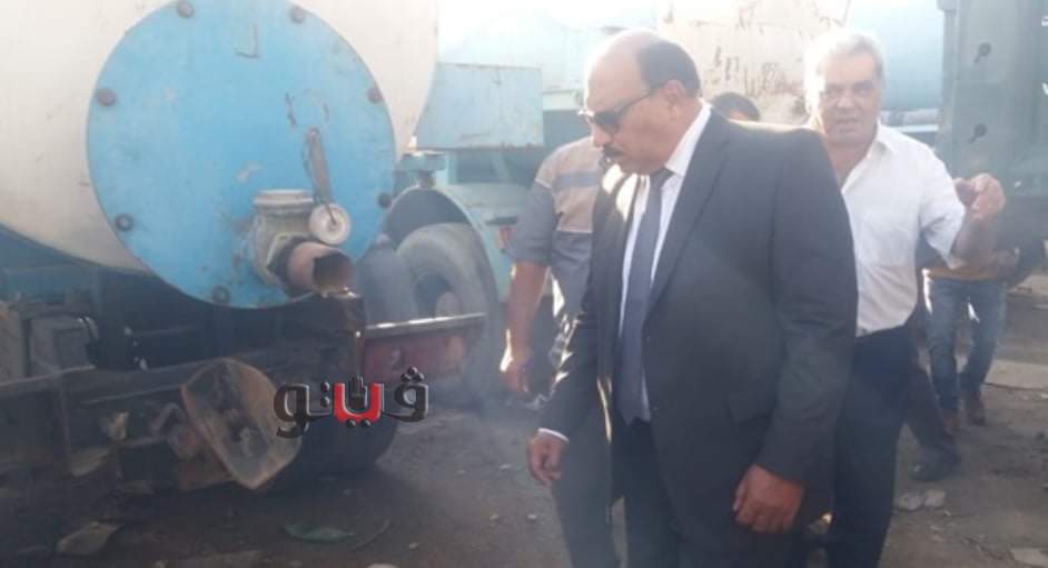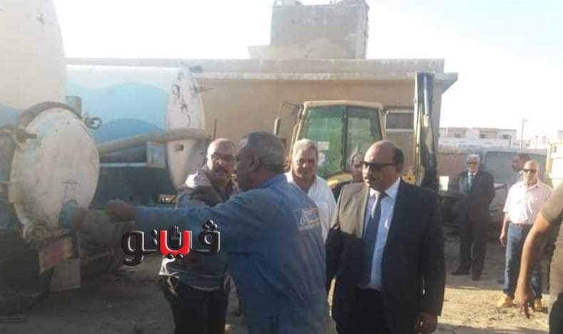 تفقد اللواء عبد الحميد عصمت رئيس مجلس إدارة شركة مياه الشرب والصرف الصحي بمحافظات القناة، اصطفاف معدات وسيارات الشركة بمنطقة حي الأربعين بمحافظة السويس.