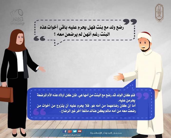 ورد سؤال إلي لجنة الفتوى بمجمع البحوث الإسلامية بالأزهر الشريف يقول فيه صاحبه "رضع ولد مع بنت فهل يحرم عليه باقي أخوات هذه البنت رغم أنهن لم يرضعن معه ؟"