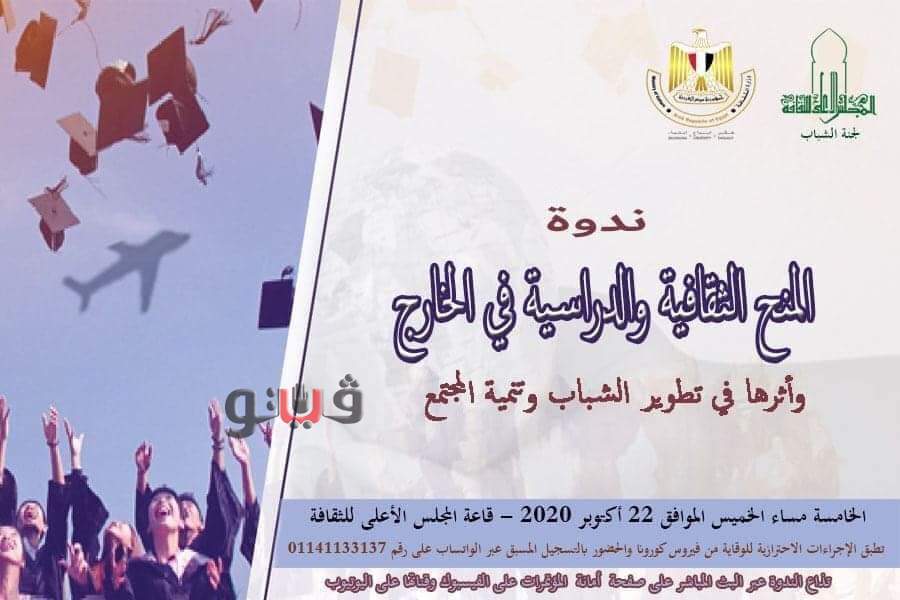 ينظم المجلس الأعلي للثقافة ، بأمانة الدكتور هشام عزمي، وبالتعاون مع المخرج أحمد السيد أبو موسى،مقرر لجنة الشباب بالمجلس، الخميس المقبل، ندوة بعنوان: "المنح الثقافية والدراسية في الخارج وأثرها في تطوير الشباب وتنمية المجتمع".
