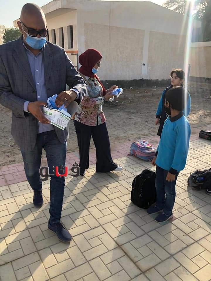 واطمأن على تنظيم دخول الطلاب وحرص على حضور طابور الصباح بمدرسة المستقبل الابتدائية رقم 2، و أثنى على اتخاذ كافة الإجراءات الاحترازية الخاصة بالتباعد بين الطلاب، وأدى تحية العلم مع المعلمين والطلاب وحرص على توزيع الكمامات على طلاب المدرسة .