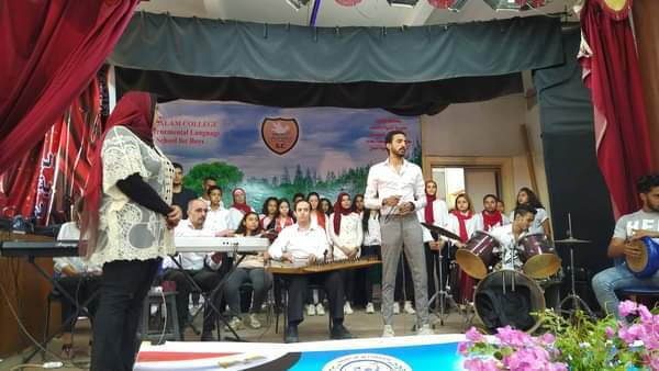 ونالت المعروضات إعجاب الجميع ثم انتقل الحضور لمسرح مدرسة كلية السلام بنين بقيادة شاهيناز مديرة المدرسة،وإنطلق الحفل بتلاوة آيات من الذكر الحكيم ثم السلام الجمهورى ثم فقرة الإلقاء الشعرى برعاية توجية التربية المسرحية لطلاب مدرسة الجيل الجديد الرسمية، ثم بدأت الفقرات الموسيقية لإعانة وطنية رائعة وأصوات واعدة.