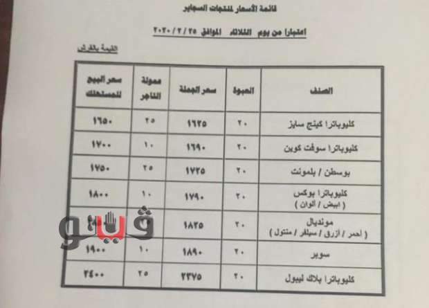 اسعار السجائر الاخرى المتداولة فى الاسواق المحلية وتشمل كافة انواع السجائر المحلية جاءات كالتالى