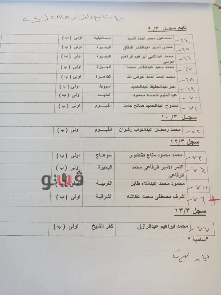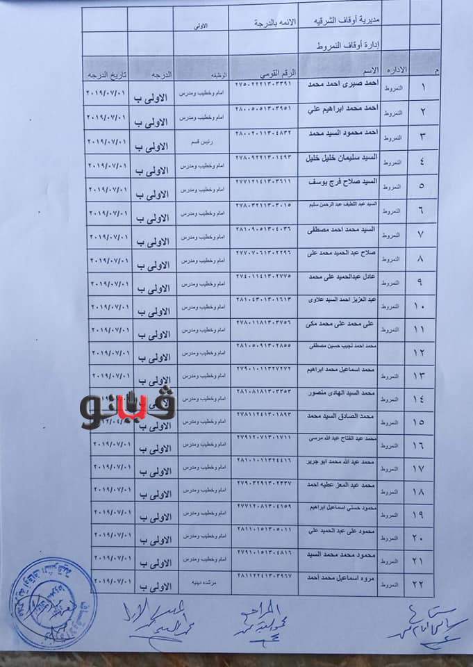 وفيما يلي كشوف بأسماء الأئمة الذين حصلوا على الترقية :