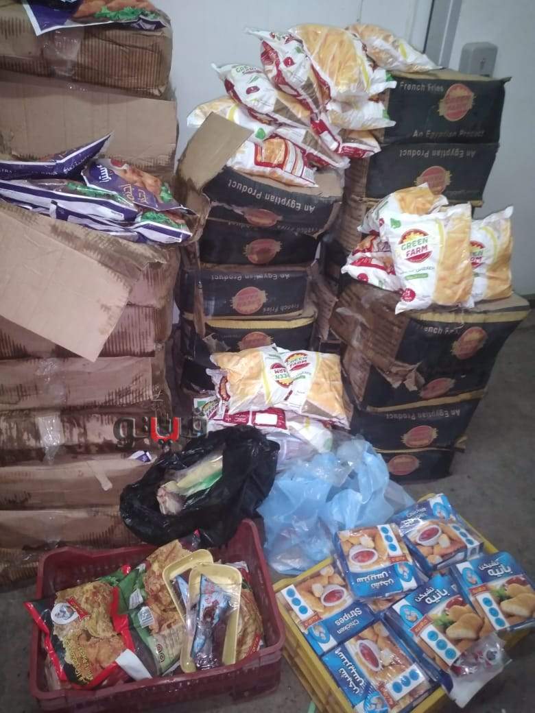 حيث تم ضبط ٢١ كرتونة بطاطس جرين فارم بكل كرتونة، و ١٠ أكياس زنة الكيس الواحد واحد كيلو جرام، و١٩ كرتونة أجنحة دجاج نوع اكسترا بكل كرتون ١٦ كيس زنة الكيس ٦٠٠جرام، و٢٢ علبة تشيكن بانية زنة العلبة ٣٥٠ جرام.