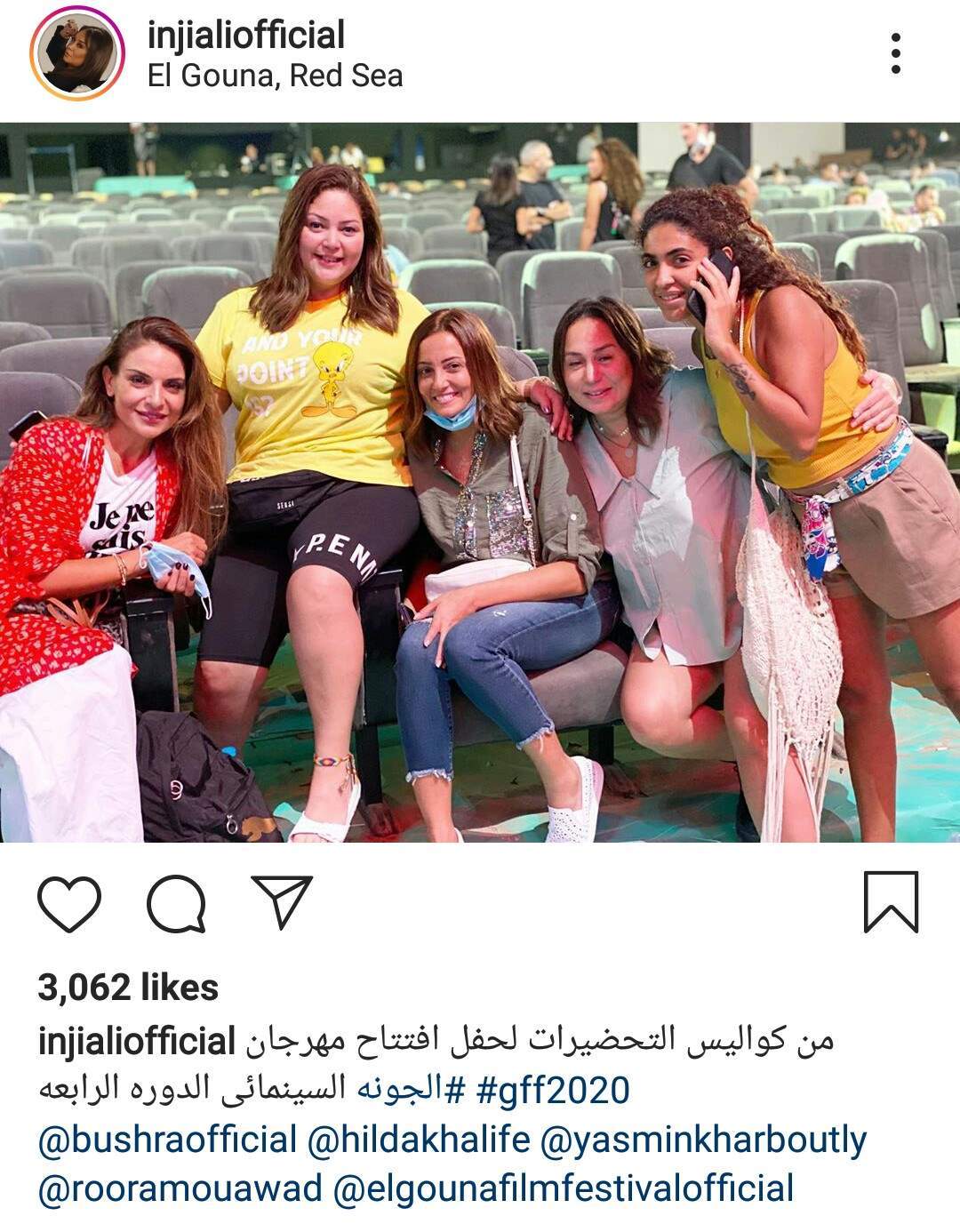 نشرت المذيعة إنجي علي عبر حسابها الشخصي على موقع الصور الشهير "انستجرام"، صورة من كواليس التحضيرات لحفل افتتاح مهرجان الجونة السينمائي في دورته الرابعة.