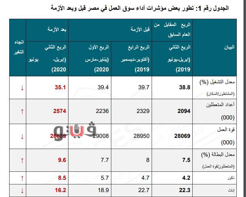 وسوف نتعرف على تطور بعض مؤشرات اداء سوق العمل فى مصر قبل وبعد ازمة كورونا