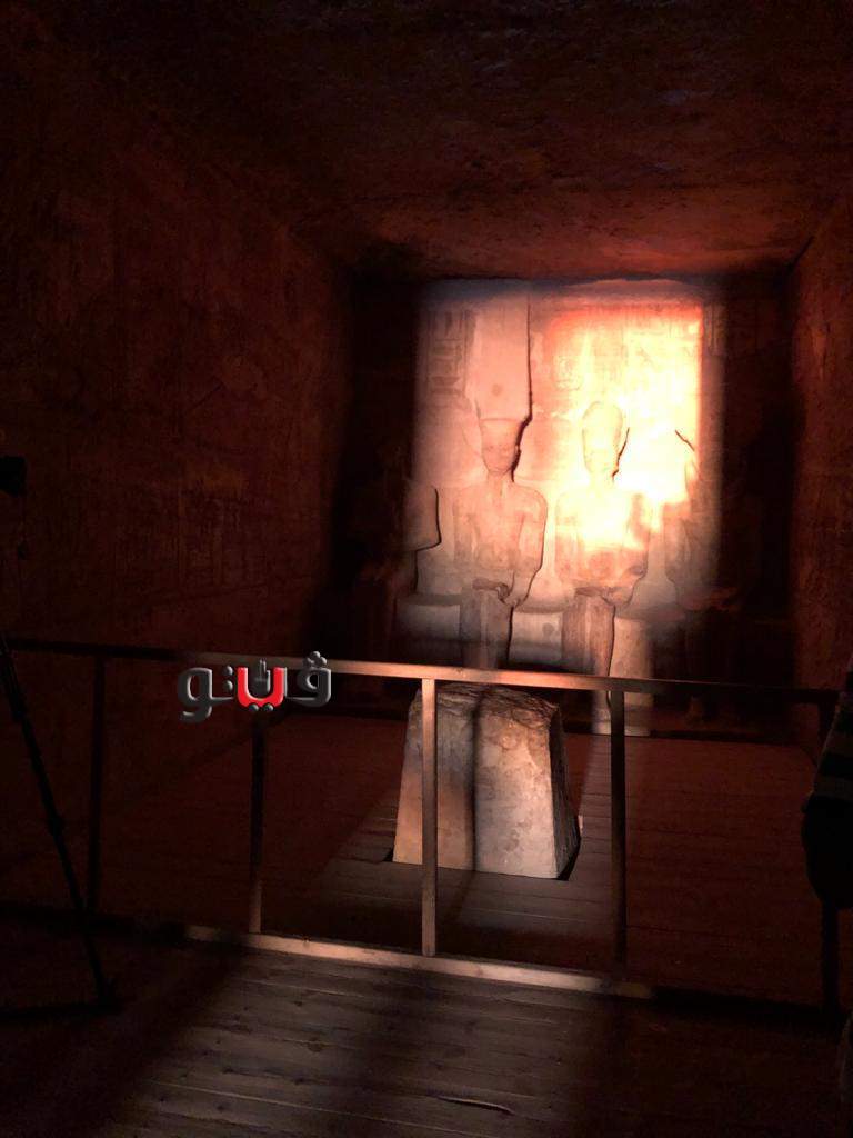 وأوضح عبد المنعم سعيد مدير عام منطقة آثار أسوان والنوبة، أنه فجر اليوم توافد عدد من السائحين الأجانب والعرب والزوار المصريين على المعبد للاستمتاع بمشاهدة هذه الظاهرة الفريدة التي تتكرر مرتين كل عام، يومي 22 أكتوبر و22 فبراير، لتجذب أنظار العالم، حيث تتسلل أشعة الشمس داخل المعبد؛ لتصل إلى قدس الأقداس والذي يبعد عن المدخل بنحو ستين مترًا، لتشع بنورها على منصة عليها تمثال الملك رمسيس الثاني جالسا وبجواره تمثال الآلهة رع حور أختي، وآمون، وبتاح، ولكن لا تتعامد الشمس على وجه تمثال "بتاح"، الذى كان يعتبره القدماء إله الظلام.