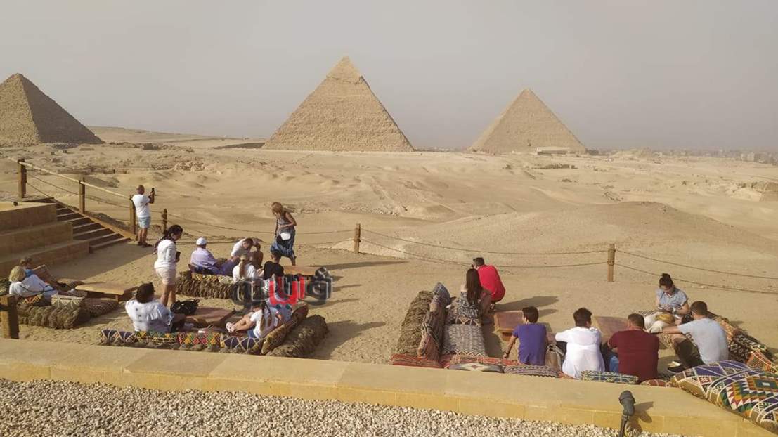 توافد السياح على مطعم "ناين بيراميدز لاونج" ببانوراما الأهرامات | صور