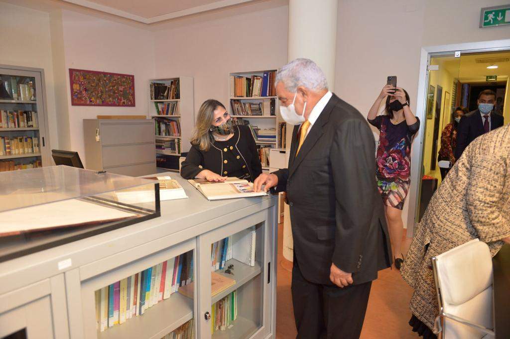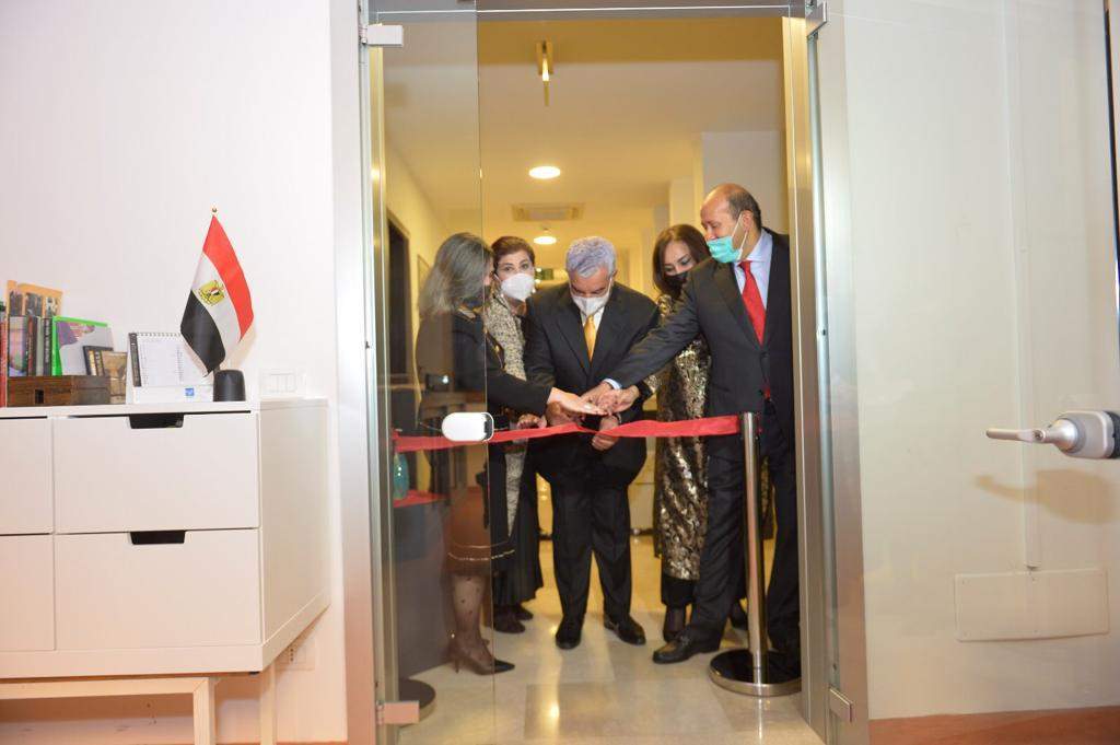 وخلال الحفل اعيد إفتتاح مكتبة الأكاديمية بعد إغلاقها عدة سنوات وتحتوي على مجموعة ضخمة ومتفردة تضم أكثر من عشرة آلاف كتاب ومجلداً، وعدداً من النسخ القديمة والنادرة من الكتالوجات والحوليات، تغطي العديد من المجالات والتخصصات مثل الفنون، الآداب، العمارة، السينما والمسرح بالإضافة إلي التاريخ والآثار، بما يجعلها ركيزة أساسية من ركائز الأنشطة داخل الأكاديمية، حيث تم تحديث النظام الرقمي لسهولة الإطلاع على القوائم والمحتويات بها، لتكون في خدمة أعضاء جائزة الدولة للإبداع، ولتكون مقصداً وقبلة للباحثين والدارسين المصريين والإيطاليين، في مجالات الحضارة والفنون المصرية،وذلك تبعا لضوابط ونظم محددة للإطلاع داخل المكتبة.