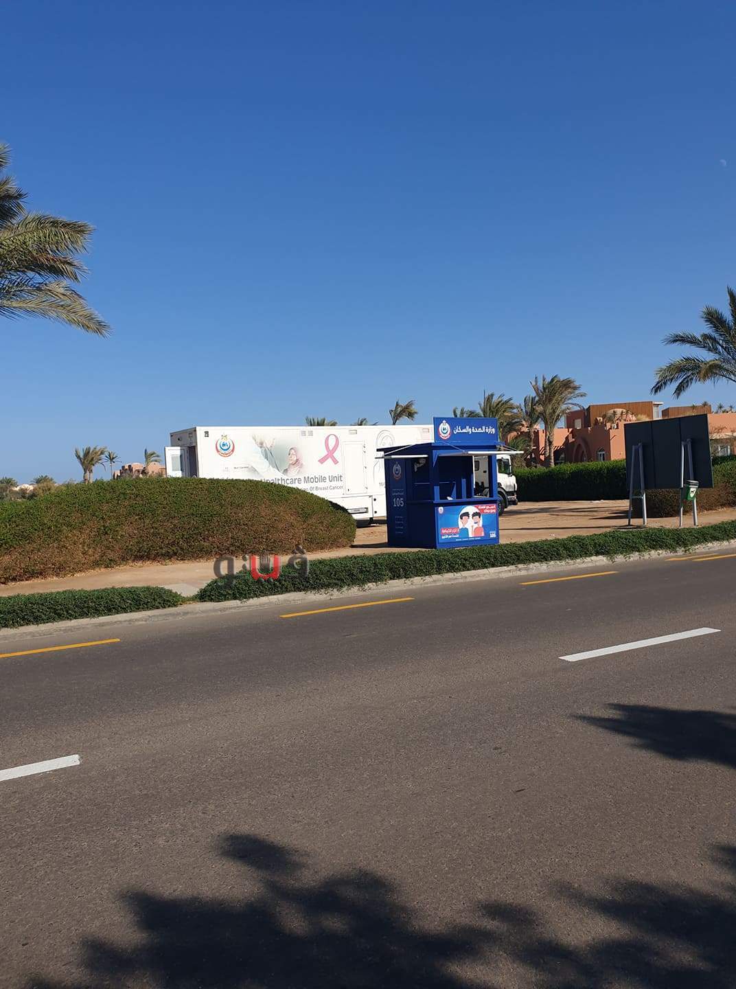 تنتشر سيارات وأكشاك تابعة لوزارة الصحة فى عدد من شوارع الجونة، لتطبيق الاجراءات الاحترازية طوال أيام فعاليات مهرجان الجونة السينمائي.