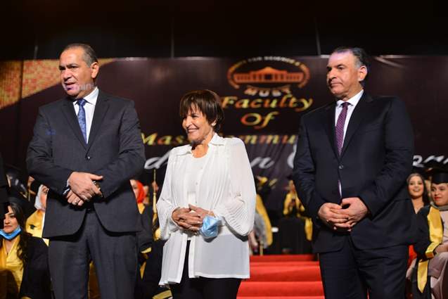ووجه الدكتور هشام عطية عميد كلية الإعلام وتكنولوجيا الاتصال، الشكر لكوكبة النجوم الذين حضروا الحفل سميرة أحمد، محمد سعد، حكيم، ماجد المصرى، دينا فؤاد، مؤكداً أنهم رموز القوى الناعمة فى مصر، وقدموا للمجتمع صورة راقية بأعمالهم التى عكست مفردات الواقع، كما احتفى خريجو دفعة "2020"، بالنجوم والتقطوا معهم صورا تذكارية على مسرح أوبرا مصر فى جو مبهج، ووسط أساتذة كلية الإعلام.