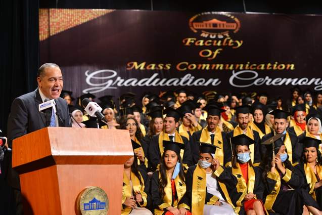 جامعة مصر للعلوم والتكنولوجيا تقيم حفلا ضخما لتخريج دفعة 2020 بكلية الإعلام وسط كوكبة من النجوم | صور