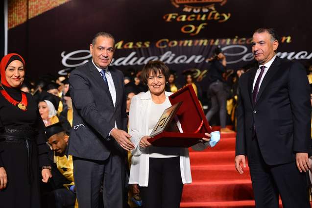 وفى الإطار ذاته، قالت الدكتورة لمياء سامح مدير وحدة الفاعليات التعليمية والأنشطة الطلابية بالكلية، إن كلية الاعلام تعمل على تنمية شخصية ومهارات الطلاب، وأيضا تنمية الوعى الثقافى لديهم، ولها دور مهم جدا فى خدمة المجتمع، وطالبت الخريجين الجدد بالعمل والاجتهاد لتكملة حلمهم ومسيرتهم فى مجال الإعلام، معربة عن سعادتها بتخريج دفعة جديدة من الكلية، ووجهت الشكر لأولياء الأمور على ما بذلوه من جهد حتى يصل أبناءهم إلى يوم التخرج لما فى ذلك من رفعة شأن التعليم الجامعي وإظهار قيمته في المجتمع ورفع معنويات الطالب الجامعي من أجل مستقبل أفضل.
