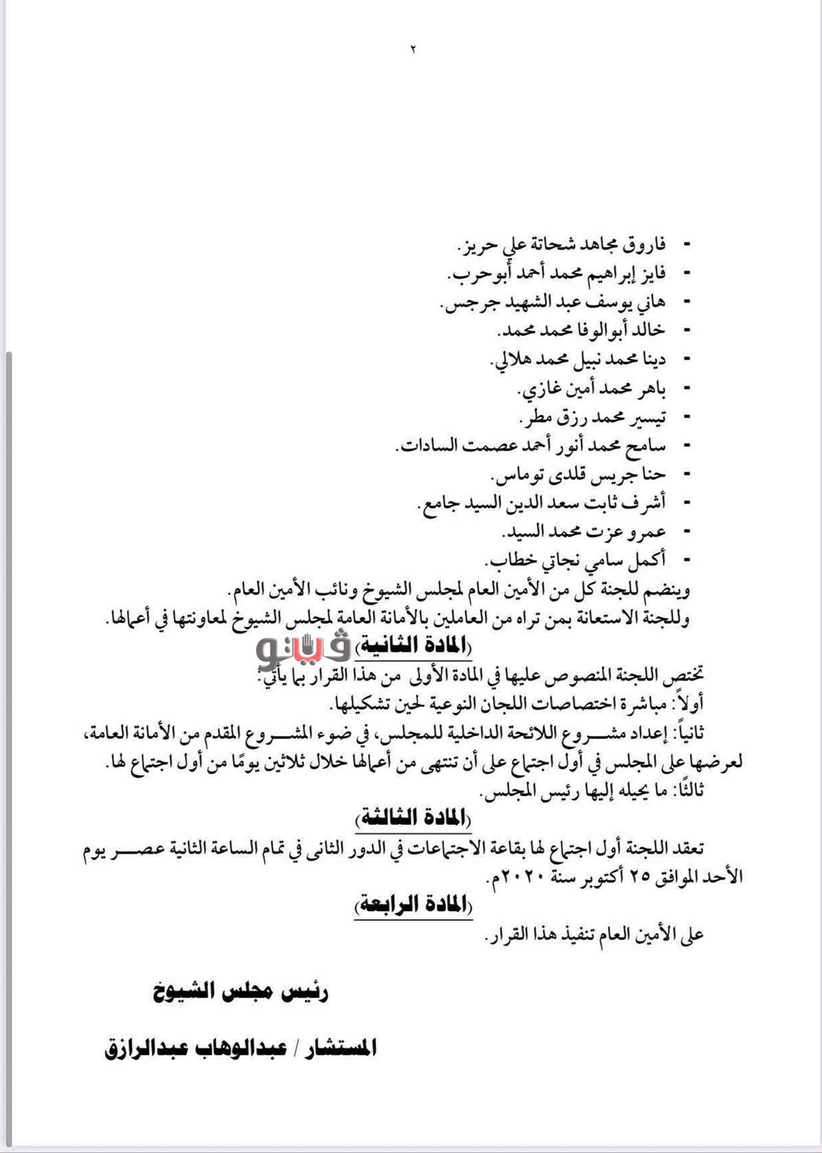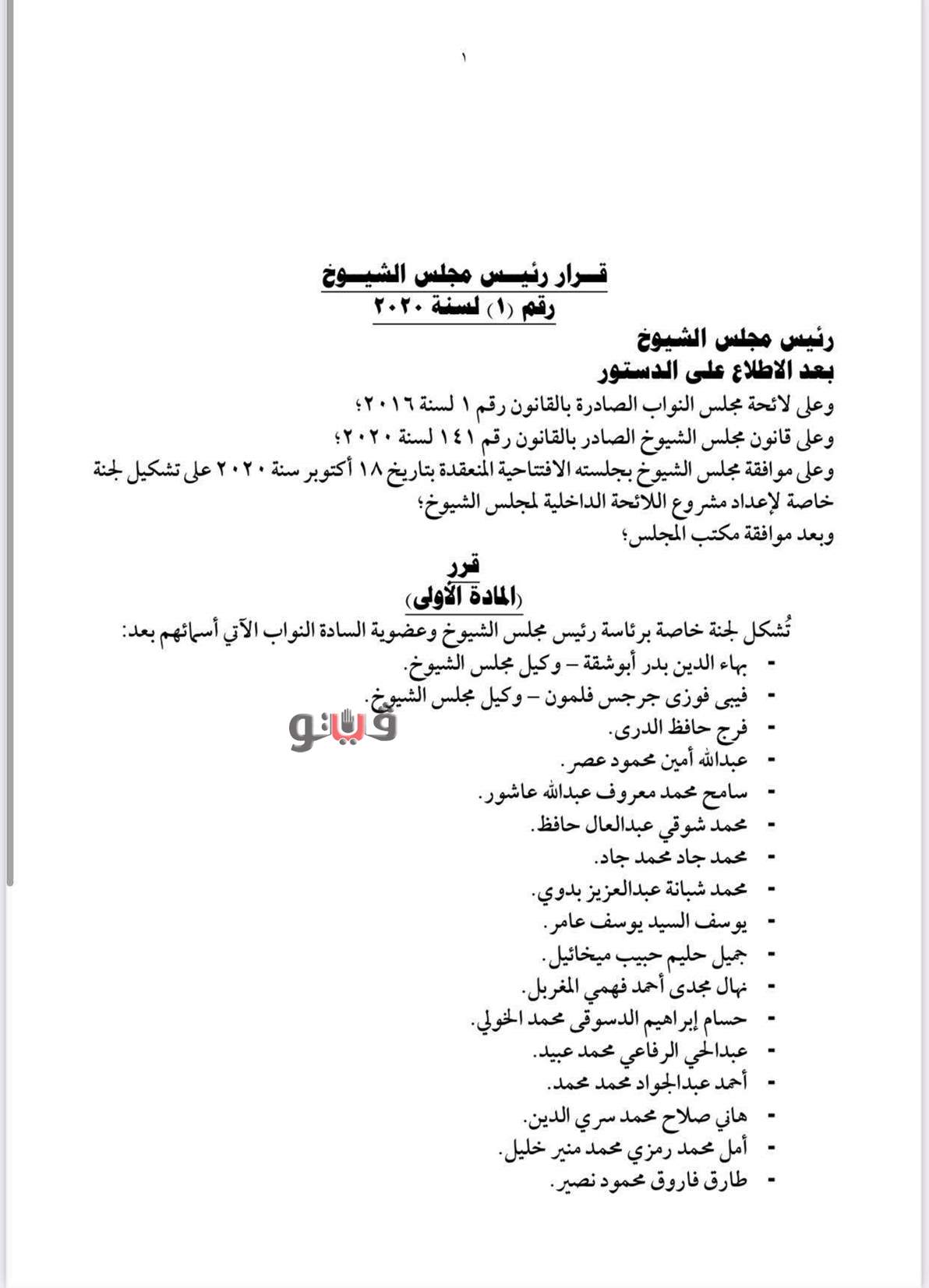 ننشر تشكيل لجنة إعداد اللائحة الداخلية لمجلس الشيوخ