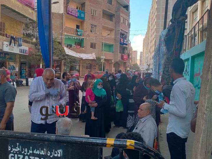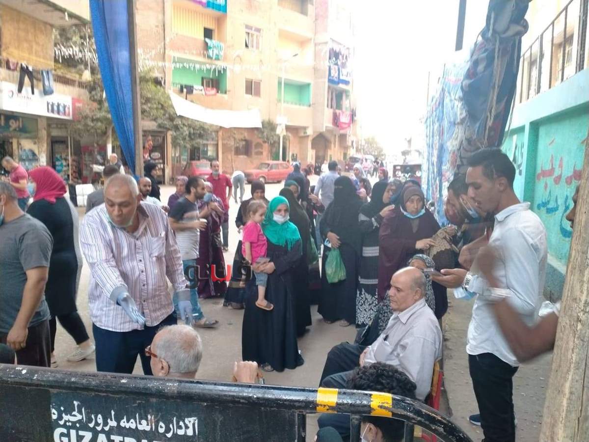 أعداد كبيرة تنتظر أمام إحدى لجان الهرم خلال استراحة القضاة للمشاركة في الانتخابات | صور