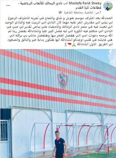 وكتب اللاعب: "الحمد لله بعد احتراف موسم طويل وشاق والنجاح في تجرِبة الاحتراف الرجوع لبيتي اللي مقدرش أتأخر عليه مهما كان، النادي اللي اتربيت فيه والنادي الوحيد الي لعبت فيه في مصر نادي الزمالك والإمضاء على بياض تقديرًا لحبي في النادي اللي متعلم فيه الكورة".
