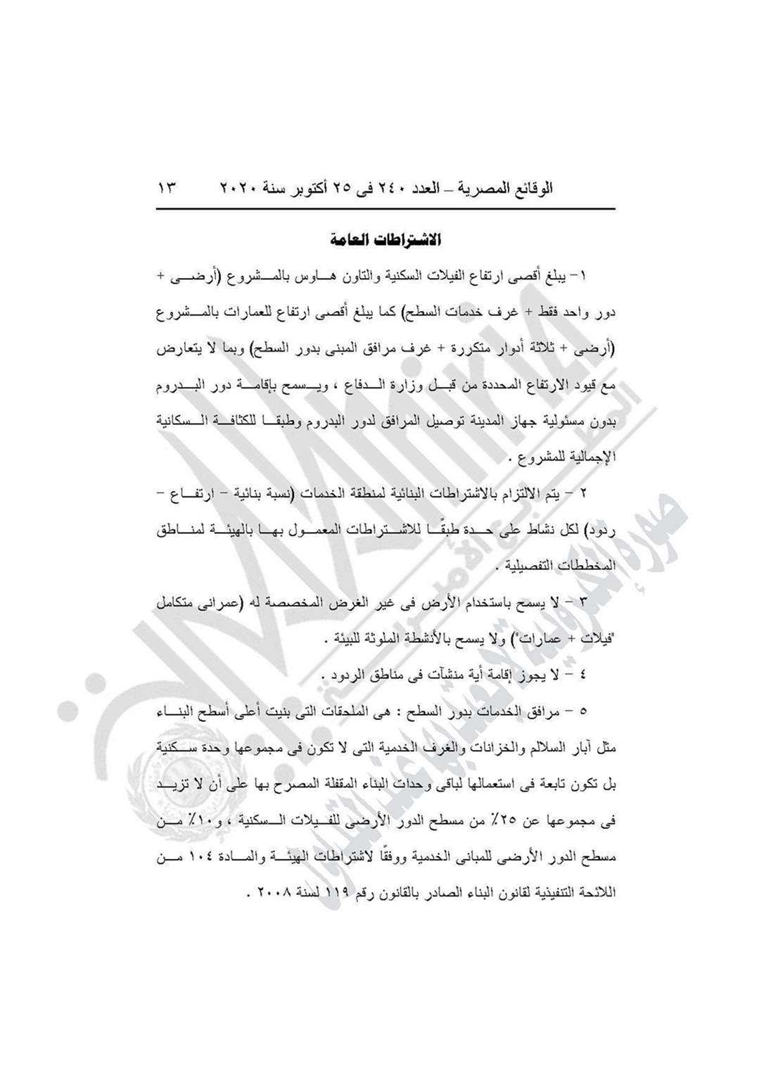 نشرت جريدة "الوقائع المصرية في عددها رقم 240، الصادر في 25 أكتوبر 2020، قرار وزارة الإسكان والمرافق والمجتمعات العمرانية رقم 548 لسنة 2020، بشأن اعتماد إقامة مشروع عمراني متكامل بالامتداد الجنوبي لمدينة الشروق.